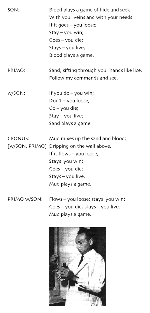 a ruff, solo voice reading here masks the powerful PRIMO, FATHER, and SON trio